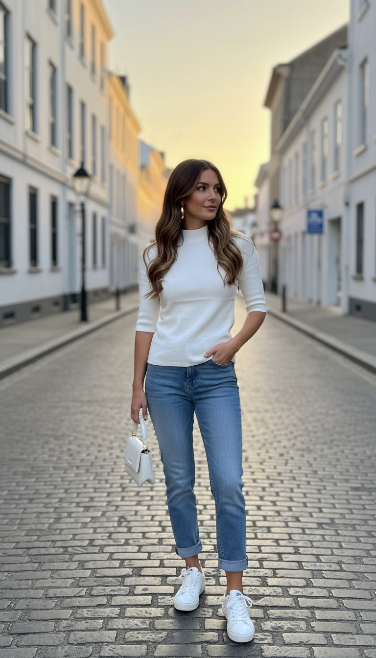 De halve mouwen en het verfijnde colletje geven de top een moderne, vrouwelijke uitstraling. De frisse witte kleur zorgt voor een tijdloze, stralende look die eenvoudig te combineren is met zowel neutrale als opvallende tinten.